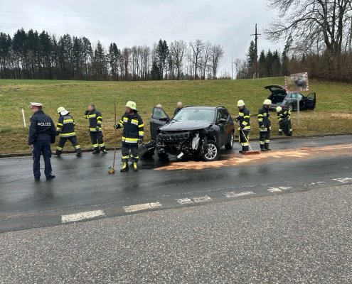 Während wir auf das Abschleppunternehmen warteten, begannen wir damit, ausgelaufenes Öl auf der Fahrbahn zu binden. Zudem wurden die Straße von herumliegenden Fahrzeugteilen gereinigt.